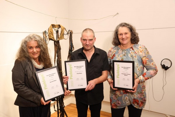 Auckland artist Gina Ferguson and West Coast artist Dale Cotton have taken out the top prize in the 2022 Fieldays No.8 Wire National Art Award with their work It never rains but it pours at a ceremony held on Thursday evening, 21st of April, at Hamilton’s ArtsPost Galleries & Shop.