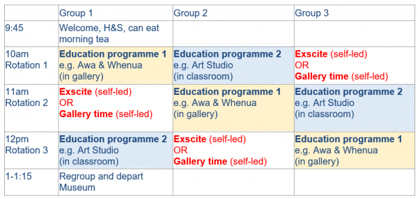 If you have fewer than 30 tauira, you will not need to do rotations. Your whole group can stay together for the duration of your visit.