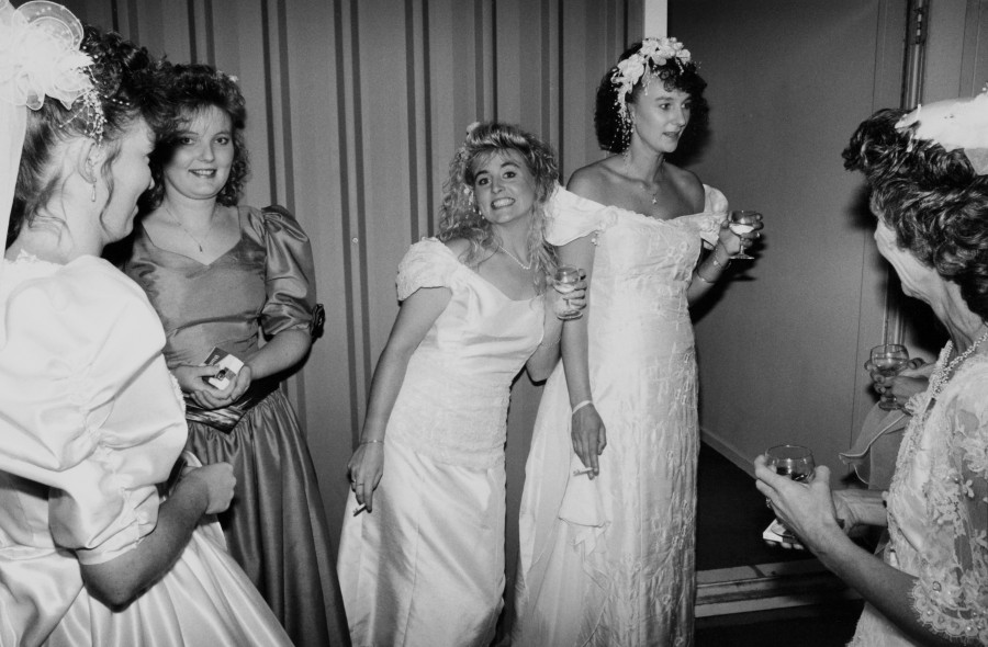 Image: Jo-Anne Griffin, centre-right and her attendant, Victoria Dauphin, have a last-minute cigarette. Collection of Waikato Museum Te Whare Taonga o Waikato