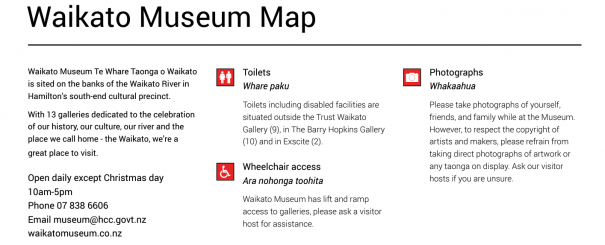If you've already decided on the exhibition(s) you want to see, then check Waikato Museum's gallery maps below to find out where to go once you get here. Our Visitor Hosts will have a copy of this map at our reception desk if you need a reminder, or you can print out your own copy by downloading the pdf here.